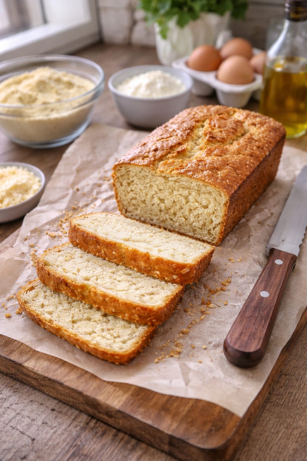 Ovo je jedan od najpopularnijih keto hljebova na internetu. Kombinacija jaja, bademovog brašna i sira daje strukturu, masnoću i sitost bez klasičnog skroba.