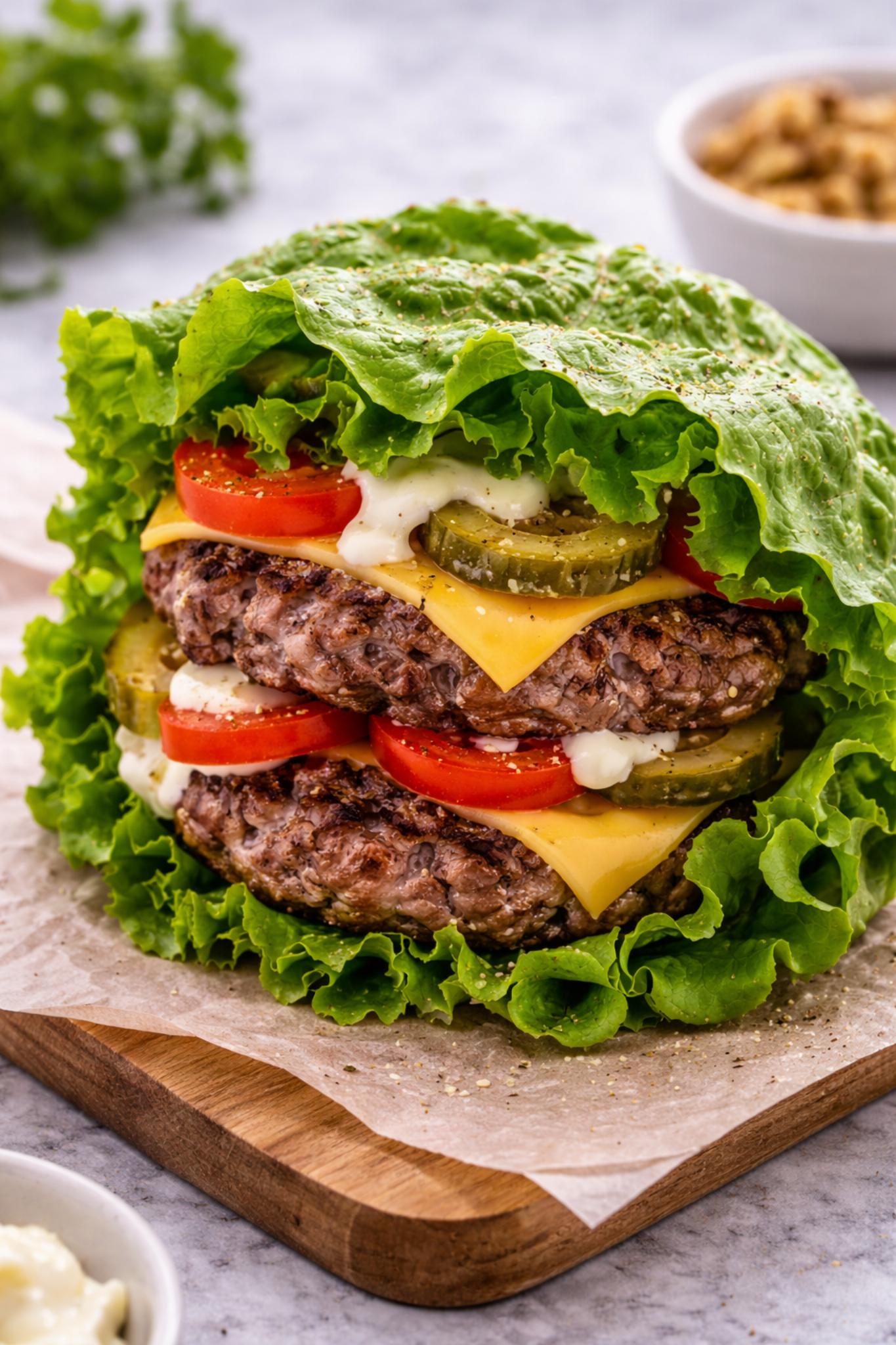 Bez peciva, ovaj obrok je baziran na proteinima i mastima. To znači sporiji i blaži glikemijski odgovor u poređenju sa klasičnim burgerom.