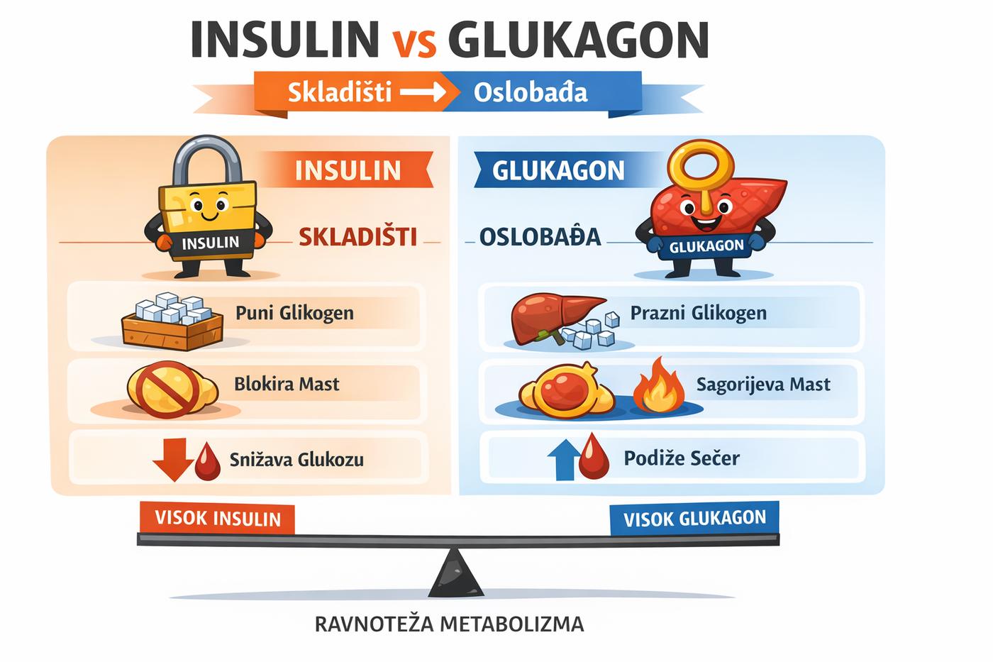 👉 Kad nema unosa energije – glukagon preuzima kontrolu.